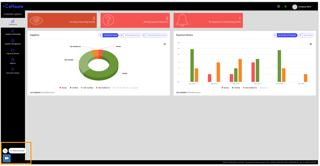 - Log in to the Eftsure portal. Click on the Help bot at the bottom of the portal.