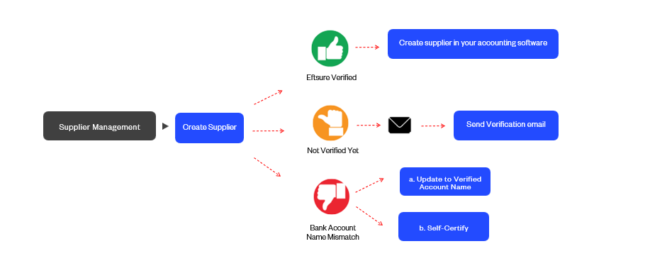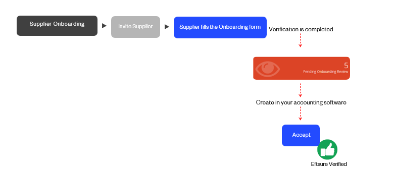 Option 2: Send a Change Request. This sends an onboarding to the Supplier to request they provide new details Once the Supplier has completed the form, Eftsure verifies the details and then notifies the users that the onboarding is ready for review. Users update their ERP system and accept the changes in Eftsure.